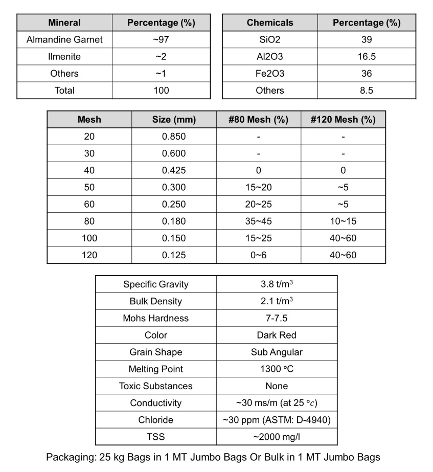 Garnet is a completely natural abrasive that does not contain toxic substances and metals, free silica, chloride and carbonate. In short, it has the following advantages over other abrasives: